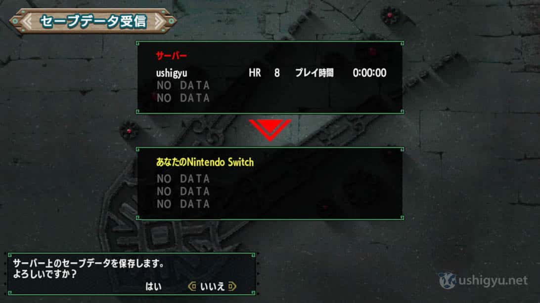サーバーに保存されているセーブデータを保存。
