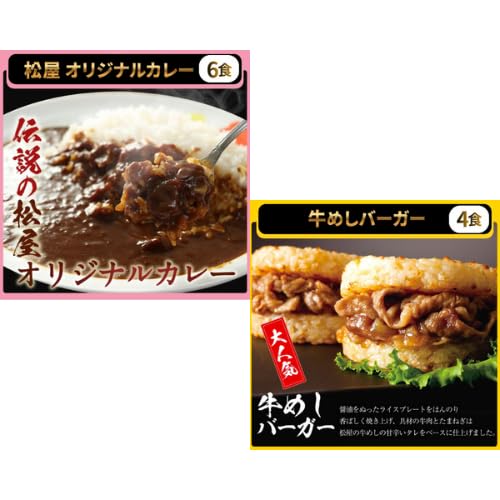 牛めし、プレミアム牛めし、オリジナルカレー、牛めしバーガー、カルビ焼肉など9種類30食のセット。