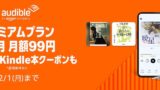 オーディオブック聴き放題の「Audible(オーディブル)」3ヶ月のあいだ月額99円で使える。2,703円分お得。