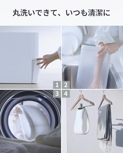 フィルターは洗濯機で丸洗い可能で、お手入れかんたん。
