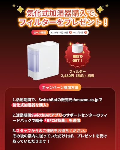 - SwitchBot 気化式加湿器:19,800→14,850円